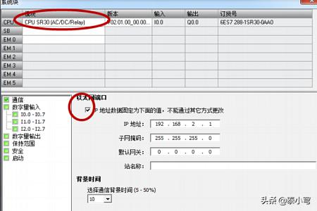 5、进入如图界面后,在上方选择与硬件符合的CPU,勾选以太网端口下面的方框进行IP设置。