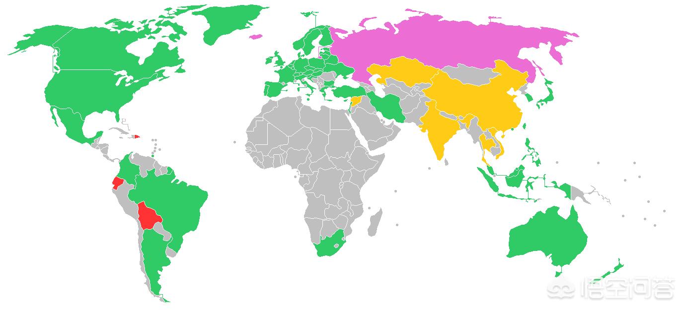 我们可以简单看看世界各个国家对于比特币的态度。除了少数几个国家之外,大部分国家都是承认其价值的。