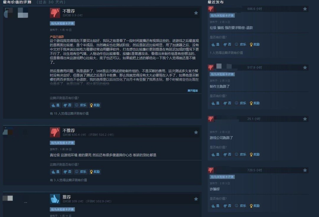 在经历近十年开发后,游戏于一个月前以“抢先体验”状态登陆Steam。据估算,约有31.9万名玩家购买了游戏,总金额约达1400万美元。如今项目突然停摆,大量玩家在社区中表达愤怒,质疑其为“拉高出货骗局”,并讨论发起集体诉讼寻求退款。