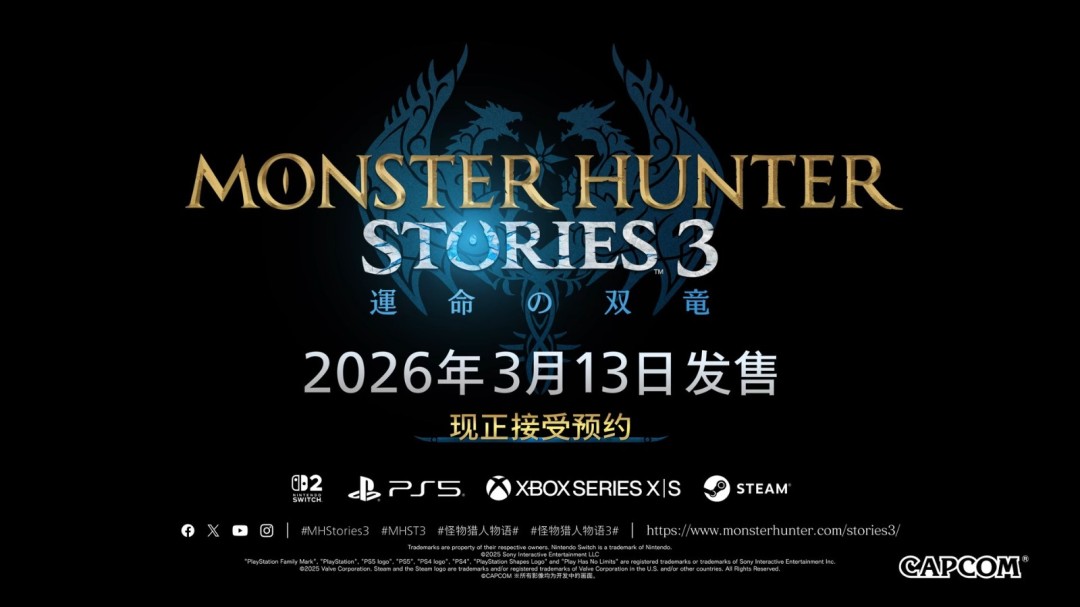 《怪物猎人物语3:命运双龙》将于3月13日登陆PlayStation 5、Xbox Series、Switch 2及Steam平台。