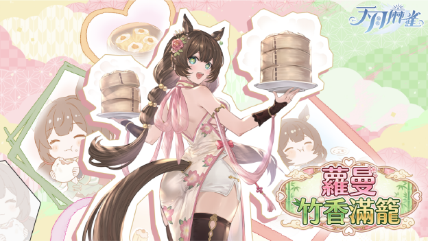 迎接马年到来,《天月麻雀》推出全新限定雀士「萝曼」(CV:高尾奏音(日)、澪Rei(国)、陈雪莹(Snowbell)(粤))。曾因为跑得比别人慢而自卑的她,幸运地遇上伯乐而激发她的潜能;现在被称呼为「骁姬」的她已是赛场上的四冠女皇。玩家将化身为她的训练员,见证她的成长故事。