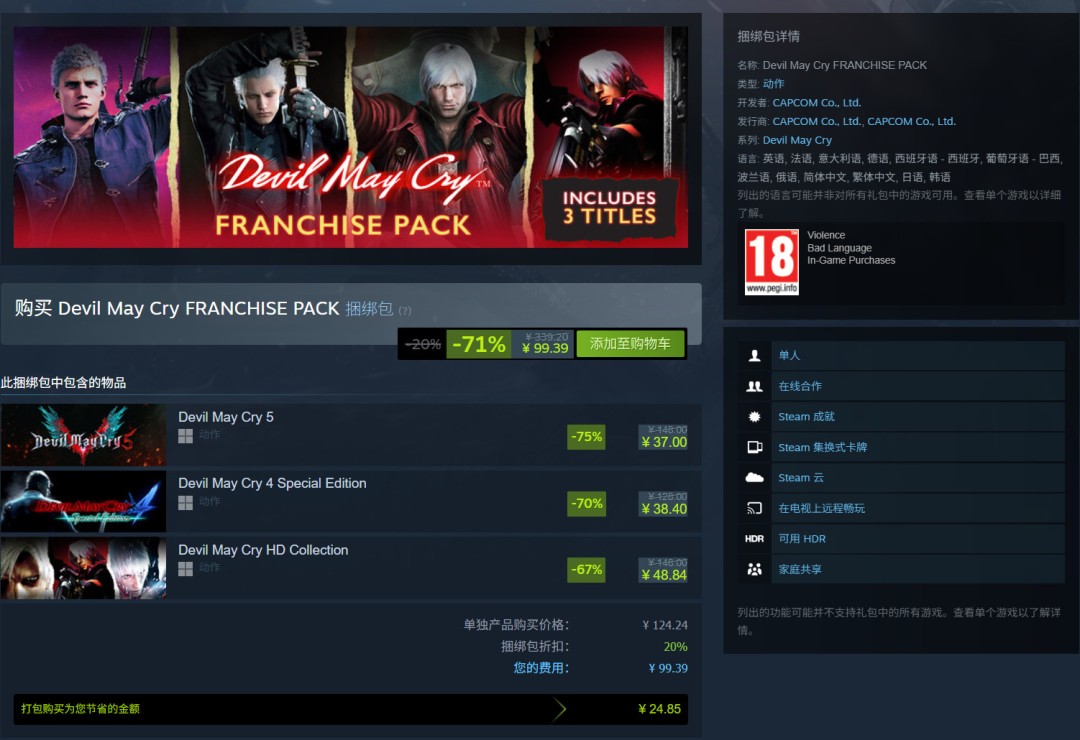 《鬼泣5》+《鬼泣4:特别版》+《鬼泣HD合集》打包买99元