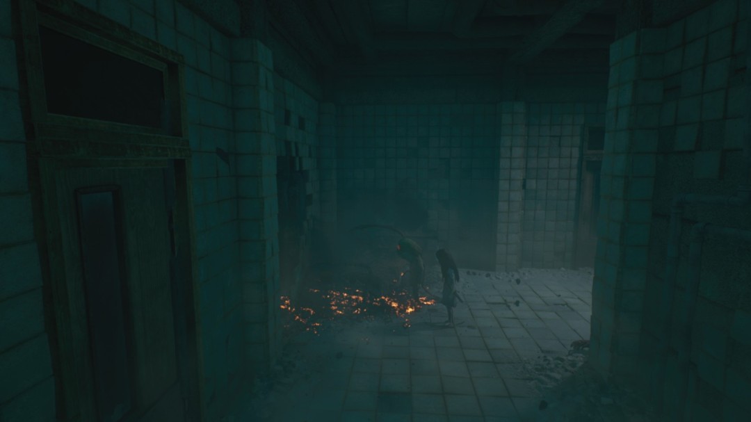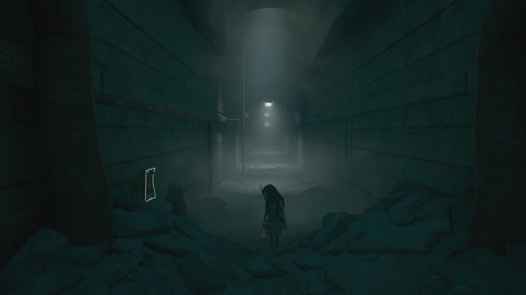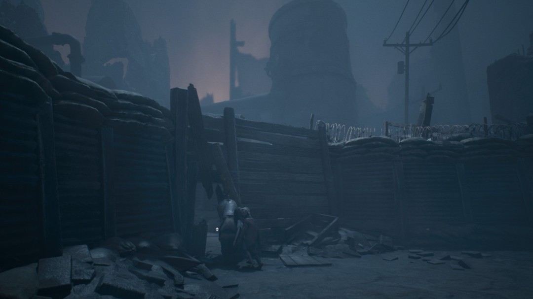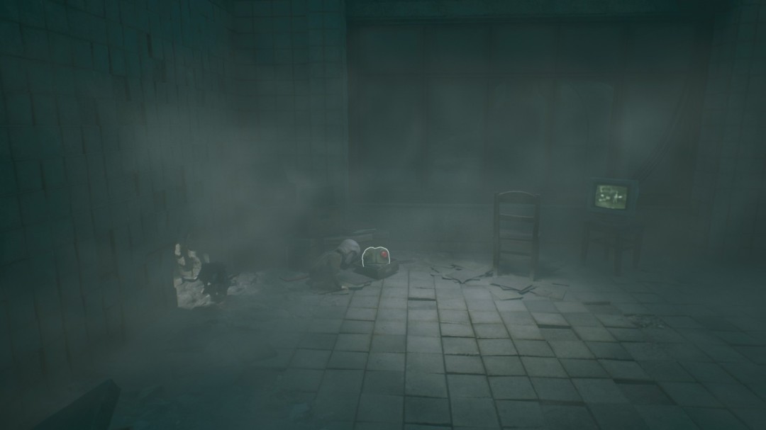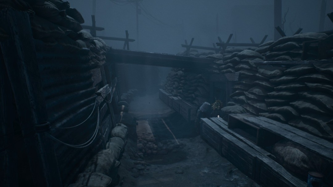 穿过开阔场地后,在战壕左上方遇见持手枪的胖子;其左侧墙缝可进入,内有雕像与面具。该雕像无需点蜡烛,自动解锁成就【为死者祈祷】。