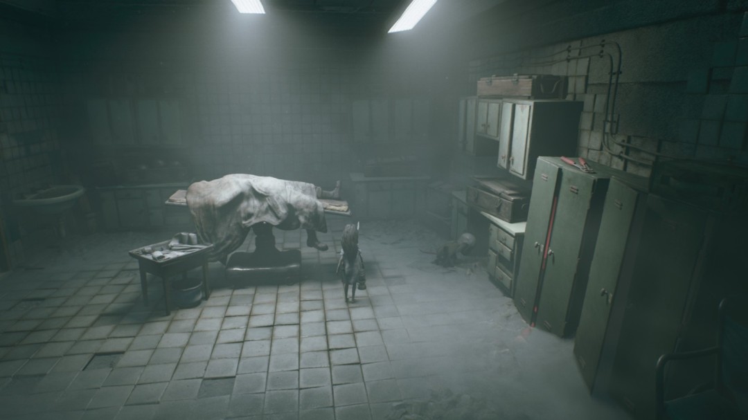 出电梯后,右侧为手术室;手术室右侧桌下藏有隐藏通道。