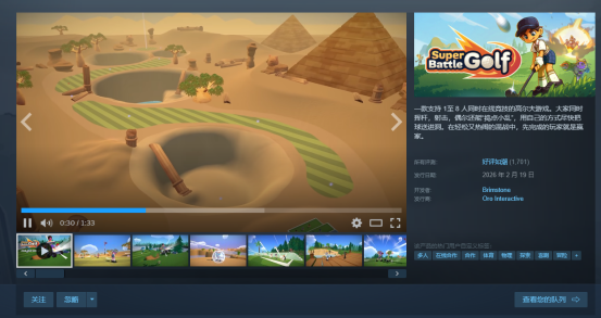 由Brimstone 工作室制作的多人合作派对游戏《超级高尔夫大乱斗》今日官方发文宣布销量已突破40万套,此时距离游戏发售仅仅只过去了一周的时间,其热度仍在上涨。与此同时,游戏的好评率表现也相当亮眼,截至目前总共收获2000余条Steam评测,好评率高达96%(好评如潮)。