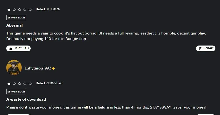 近日,Bungie为《马拉松》开启了BETA公测,以测试服务器强度,但外媒报道称这款极具争议的游戏在PS商店上的评分只有3.04星,甚至要低于PS最烂的第一方游戏《星鸣特攻》(3.5星)。