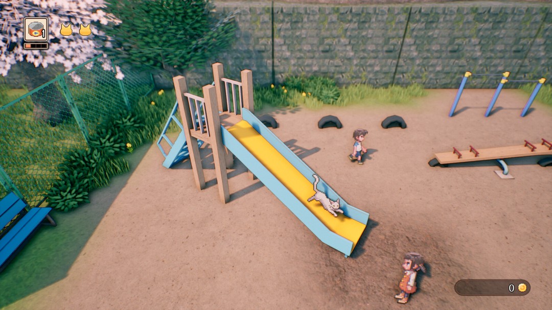 玩家将化身为一只猫咪,在樱花盛开的季节探索日本乡村的奈叶小镇。运用猫咪独特的动作,例如蹬墙跳、挖洞、爪子拍打和扭屁股冲刺,前往樱奈神社——一个承载着你与已故爷爷回忆的地方。