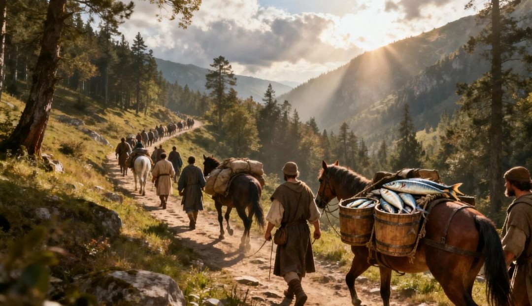 《覆雪之上》的故事起源于具有传奇色彩的科罗坦山口,这处山口的首次记载可追溯至公元1世纪,相传这里是凯撒大帝穿越阿尔卑斯远征高卢的必经之路。到了中世纪,这里已演变为欧洲南北风味不同货物往来的贸易咽喉,承载着凤尾鱼与比目鱼的商队频繁往来,在凛冽的寒风中为山口刻下了充满生活气息的烟火印记。