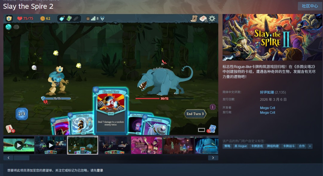 《杀戮尖塔2》峰值破41万 “嘲讽”《马拉松》是小游戏